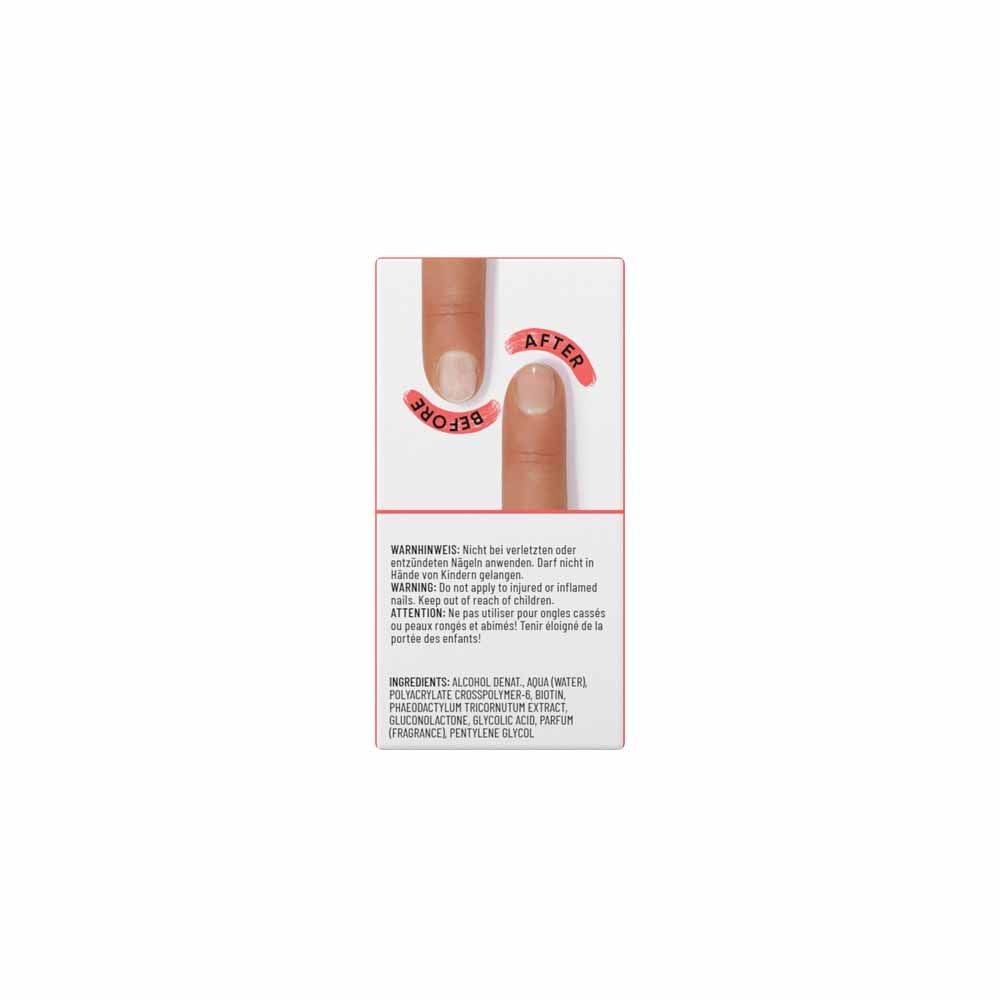 Für starke und widerstandsfähige Nägel. Schnell wirkendes Serum, das in den Nagel eindringt und das Nagelkeratin repariert. Bereits nach der ersten Anwendung wirken die Nägel gestärkt.BESTÄTIGTE WIRKSAMKEIT 95% bestätigen weniger brüchige Nägel zu haben 90% der Teilnehmer haben weniger empfindliche Nägel 95% bestätigen die Wiederherstellung einer gesunden Nagelstruktur 85% bestätigen weniger splittrige / gespaltene Nägel *20 Verwender- 2 Wochen- 2 Schichten Hinweis: Ergebnisse abhängig von der Nagelbeschaffenheit Anwendung mind. 3 -6 Tage