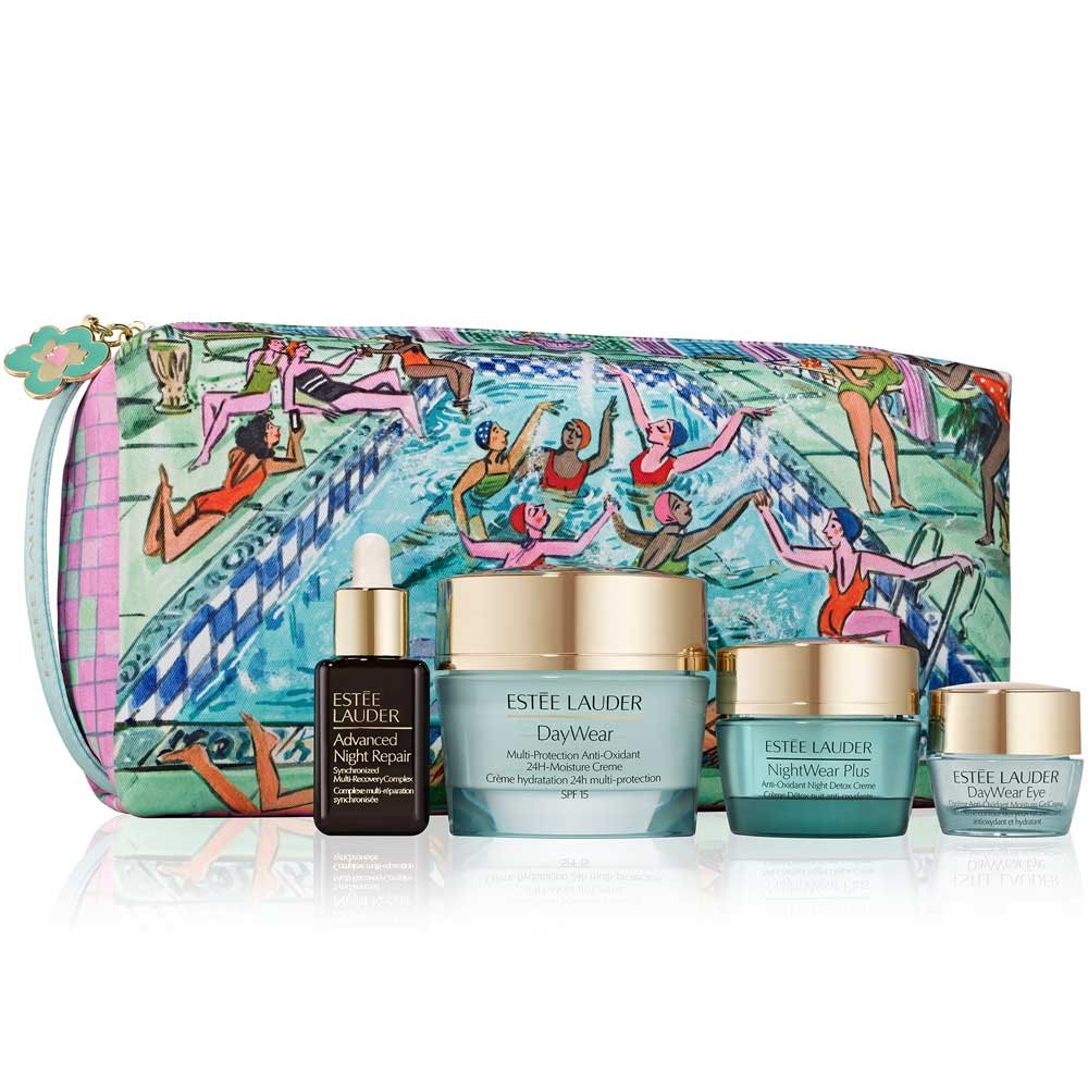 Das Estée Lauder Moisture Value Set bietet Ihnen eine umfassende Pflegekollektion, die sich perfekt für Ihre Hautpflegeroutine eignet. Die enthaltene DayWear Multi-Protection Anti-Oxidant 24H-Moisture Creme mit einem SPF von 15 sorgt für eine langlebige Feuchtigkeitsversorgung und schützt die Haut effektiv vor schädigenden Umwelteinflüssen. Die NightWear Plus Anti-Oxidant Night Detox Creme verfeinert das Hautbild und unterstützt die Regeneration während der Nacht. Das Advanced Night Repair Serum wirkt glättend und verleiht Ihrer Haut jugendliche Strahlkraft. Ergänzt wird das Set durch die DayWear Eye Cooling Anti-Oxidant Moisture GelCreme, welche die Augenpartie erfrischt und für ein waches Aussehen sorgt. Jedes Produkt ist darauf ausgelegt, Ihnen zu einer gesunden, revitalisierten Haut zu verhelfen.