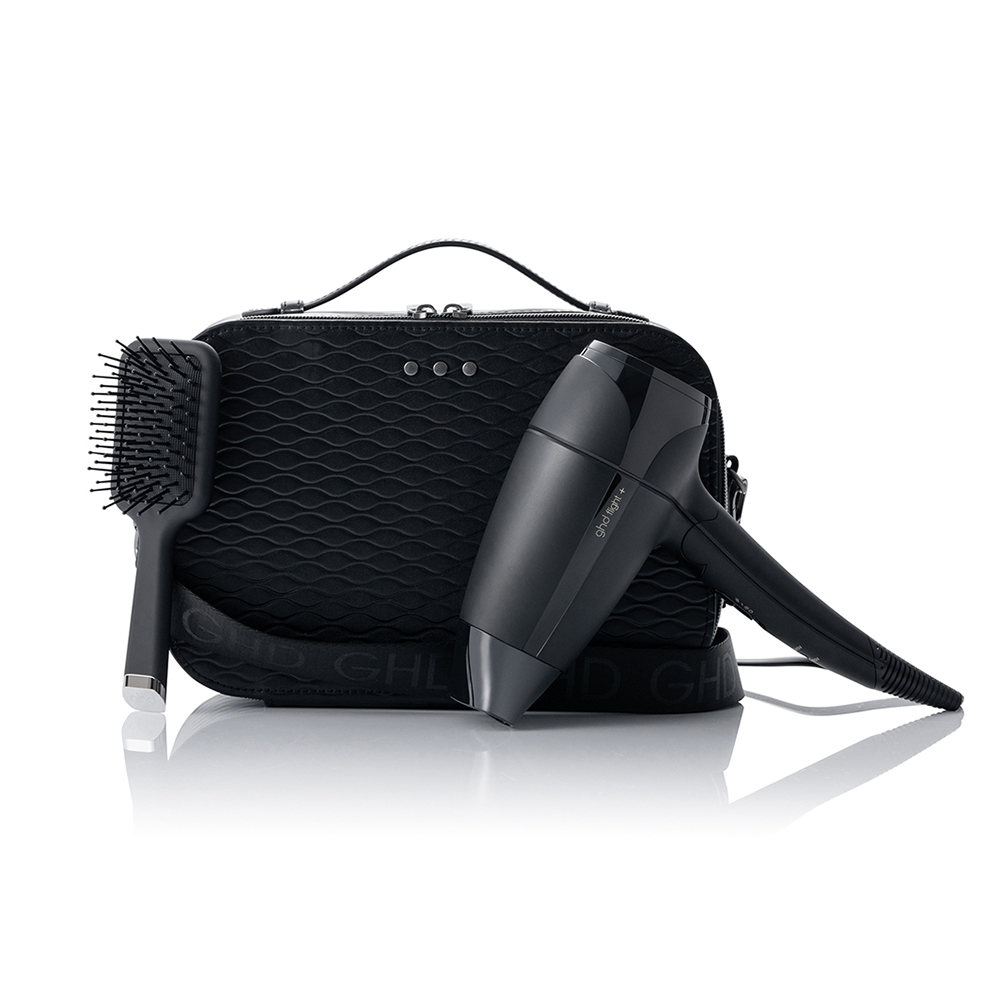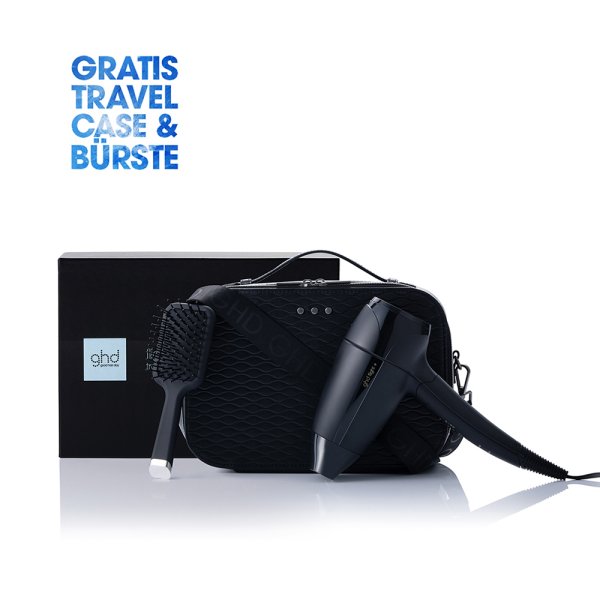 Das ghd flight+® Geschenkset überzeugt nicht nur durch Funktionalität, sondern auch durch sein ästhetisches Design. Der Haartrockner präsentiert sich in elegantem Schwarz, während das schützende Travel Case mit seiner feinen Struktur und hochwertigen Verarbeitung sofort ins Auge fällt. Die Mini Paddle Brush, ebenfalls im Set enthalten, ist ein durchdachtes Detail für unterwegs und harmoniert perfekt mit dem Look des Haartrockners. Dieses Set verbindet Eleganz und Praktikabilität, sodass Sie stets stilvoll unterwegs sind. Jeder Bestandteil ist aufeinander abgestimmt und präsentiert sich in einem modernen, kohärenten Design, das Ihre Reiseutensilien aufwertet.