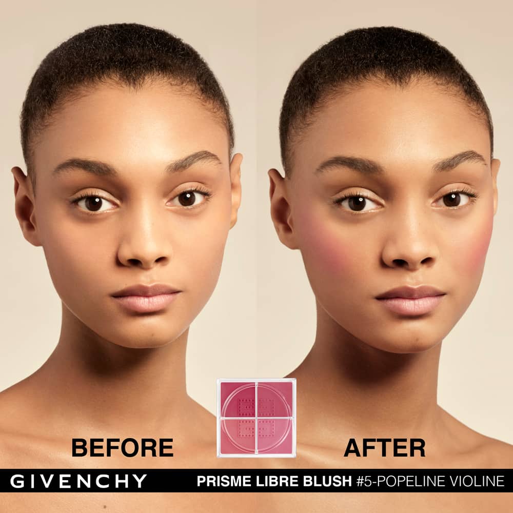 Der Givenchy Prisme Libre Blush vereint innovative Technologie mit erlesenem Design. Dieses einzigartige Rouge besteht aus vier harmonierenden Farbtönen, die Ihr Gesicht wunderbar modellieren und jedem Teint ein lebendiges Strahlen verleihen. Ein sanfter Auftrag genügt, um die Haut bis zu 12 Stunden in frischen, natürlichen Farben erstrahlen zu lassen. Dank der atmungsaktiven und komfortablen Formel verschmilzt der Puder sanft mit Ihrer Haut und sorgt für ein leuchtendes, mattes Finish. Die Farbe ist aufbaubar und ermöglicht ein müheloses Auftragen, das Ihnen ein jugendlich gesundes Aussehen schenkt. Egal ob unterwegs oder zu Hause, der handliche Puder lässt sich einfach anwenden und sorgt stets für ein frisches Erscheinungsbild.