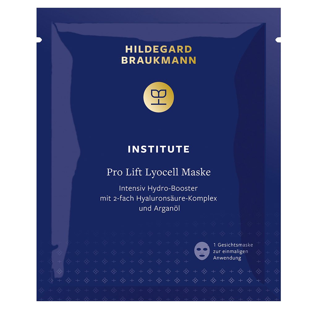 Die Hildegard Braukmann Pro Lift Lyocell Maske bietet Ihrer Haut eine intensive Pflege, die durch einen einzigartigen, zweifachen Hyaluronsäure-Komplex verstärkt wird. Während hochmolekulare Hyaluronsäure als unsichtbares Schutzschild auf der Hautoberfläche wirkt und den Wasserverlust minimiert, dringt die niedrigmolekulare Variante tief in die Hautschichten ein. So wird Ihre Haut von innen heraus optimal mit Feuchtigkeit versorgt und erscheint sichtbar frischer und jugendlicher. Angereichert mit Arganöl, wird die Haut dabei weich und geschmeidig gepflegt. Die Maske aus hochreiner Lyocell-Faser, gewonnen aus nachhaltig bewirtschaftetem Eukalyptusholz, ist besonders hautfreundlich und biologisch abbaubar. Sie nimmt bis zu 50 % mehr Feuchtigkeit auf als herkömmliche Baumwolle und passt sich perfekt an Ihre Gesichtsform an. Die Anwendung ist unkompliziert und für jeden Hauttyp geeignet.
