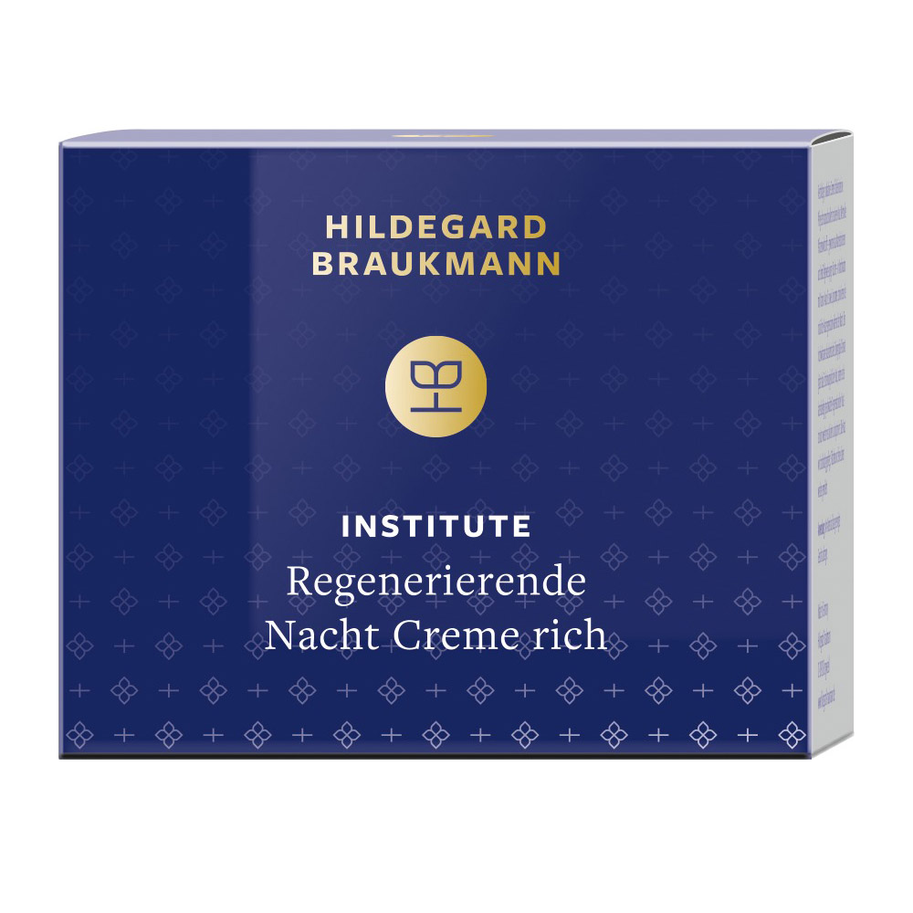 Das Design der Hildegard Braukmann Regenerierende Nacht Creme Rich ist ebenso ansprechend wie ihre Pflegewirkung. Der Creme-Tiegel besticht durch eine klare, elegante Form, die einen Hauch von Luxus ausstrahlt. Der Deckel in tiefem Blau kontrastiert harmonisch mit dem hellen, schlichten Gefäß, das auf Ihrem Nachttisch ein stilvolles Statement setzt. Die sanfte Farbgebung und das dezente Branding verleihen dem Produkt eine zeitlose Ästhetik, die Vertrauen und Qualität verkörpert. Jedes Detail des Designs ist durchdacht und unterstreicht die Exklusivität dieser hochwirksamen Nachtpflege.