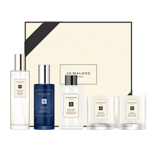 Das Jo Malone London House of Jo Malone London Set ist eine harmonische Komposition aus fünf sorgfältig ausgewählten Düften, die Ihren Alltag mit einem Hauch von Luxus bereichern. Das Lavender & Moonflower Kissenspray verwöhnt Sie mit einer beruhigenden Note, die ideal für entspannte Abende ist. Das Wood Sage & Sea Salt Body & Hand Wash erfrischt Ihre Sinne mit einem maritimen Duft, der sowohl Körper als auch Hände pflegt. Die Lime Basil & Mandarin Travel Candle sorgt für ein mediterranes Ambiente, während das English Pear & Freesia Raumspray mit seiner fruchtigen Frische den Raum belebt. Ergänzt wird die Kollektion durch die Peony & Blush Suede Travel Candle, die mit floralen Akzenten den perfekten Ausklang bietet.