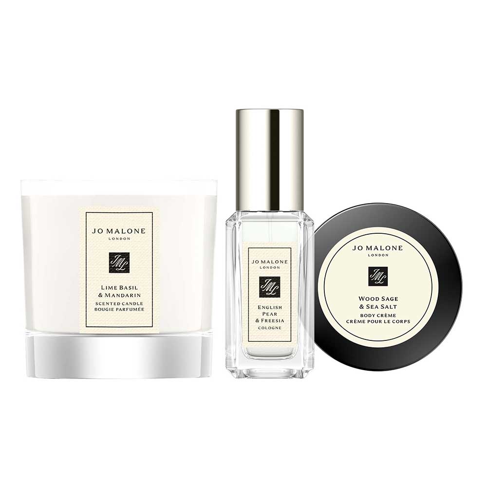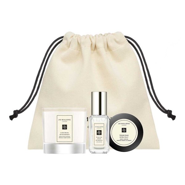 Optisch besticht das Jo Malone London Mini Luxuries Trio durch seine elegante Gestaltung. Der Cologne-Flakon präsentiert sich in einer klaren Form, die klassisch und modern zugleich wirkt. Die Body Crème ist in einem praktischen, handlichen Tiegel verpackt, der sich perfekt für unterwegs eignet. Die Mini-Kerze verleiht dem Set mit ihrem schlichten Design und der harmonischen Farbgebung eine zusätzliche Note von Raffinesse. Der edle Beutel mit Kordelzug rundet das Gesamtbild stilvoll ab und macht das Set zu einem echten Hingucker.