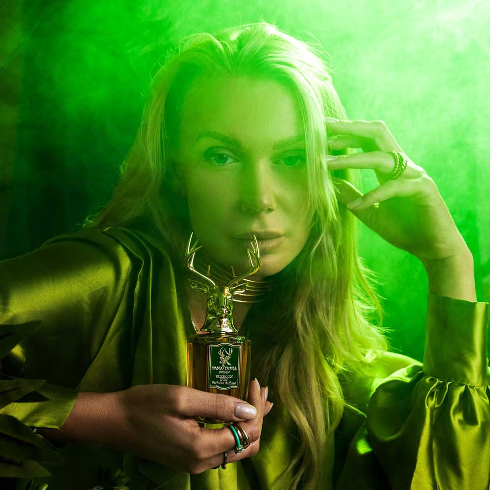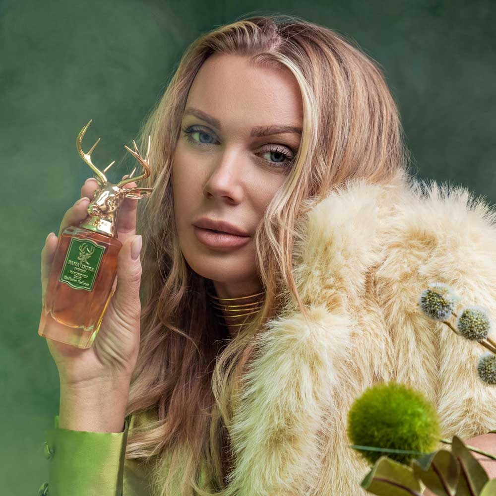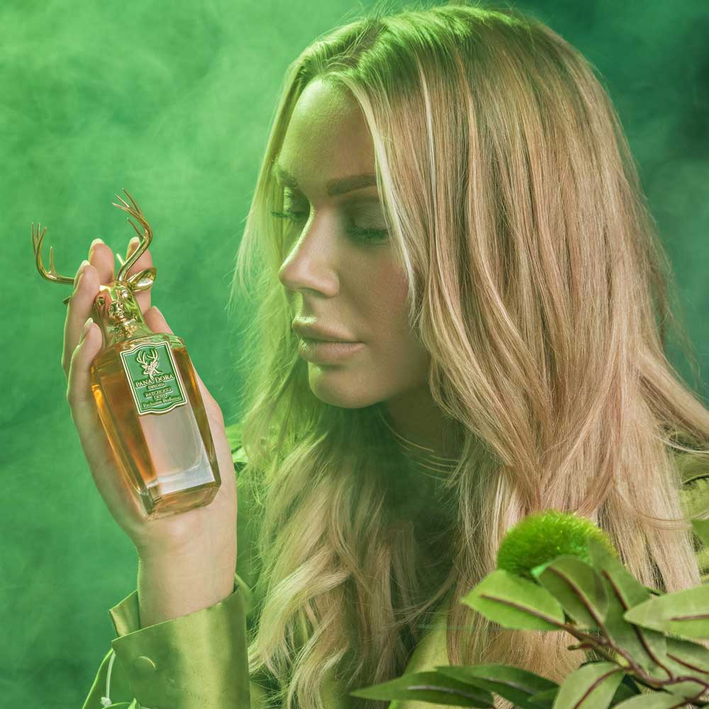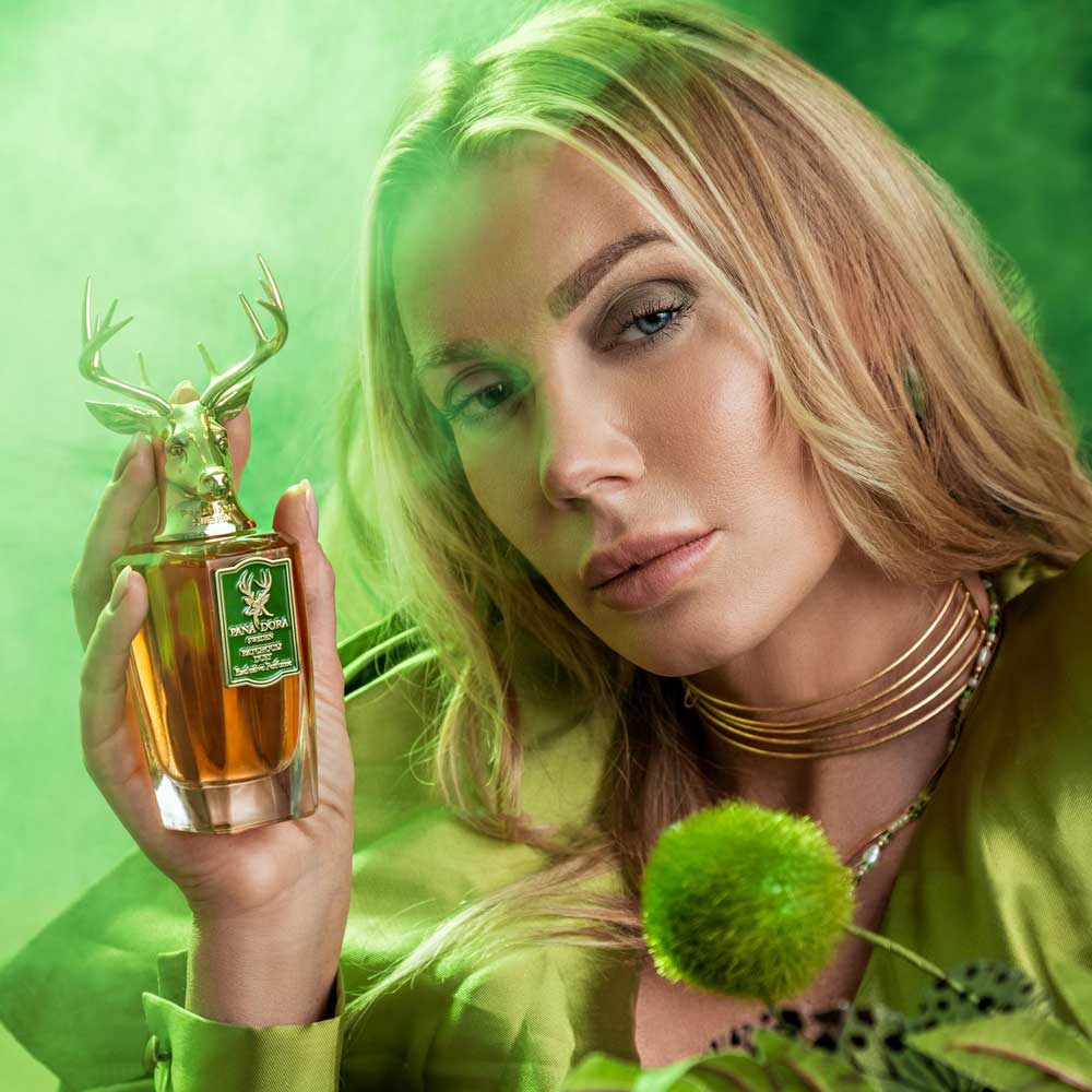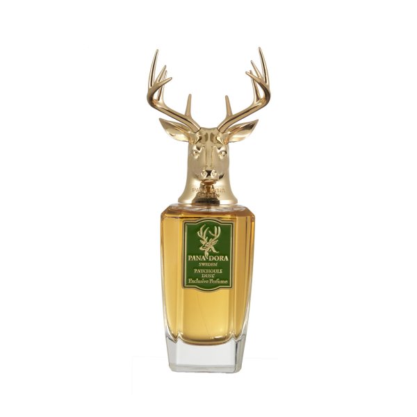 Das Pana Dora Sweden Extrait de Parfum besticht durch sein markantes Flakon-Design. Die elegante, rechteckige Form des Flakons wird von einem majestätischen, goldenen Hirschkopf gekrönt, der gleichzeitig als Verschluss dient. Der gläserne Körper des Flakons gibt den Blick auf den warmen, bernsteinfarbenen Inhalt frei und verkörpert die kraftvolle und zugleich sanfte Natur des Duftes. Dieses Kunstwerk spiegelt sowohl die rauhe Schönheit als auch die zarte Eleganz der schwedischen Landschaft wider, die diesen einzigartigen Duft inspiriert hat.